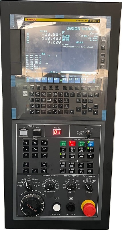 Система ЧПУ Fanuc 0i-TF (5) (Япония) Промышленная система ЧПУ самая распространённая в России, более проста в использовании, легко найти операторов. Сервис по всей России, запасные части в наличии на складах. Для удобства оператора стойка снабжена маховиком ручного управления. |