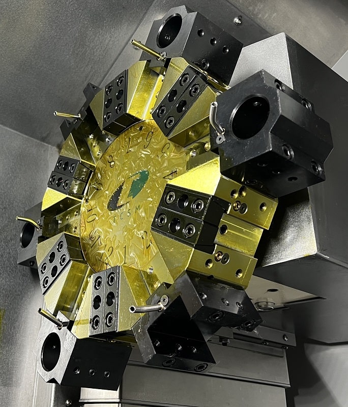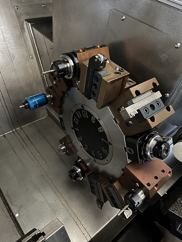 Приводная револьверная головка ChenShin 80/12T На станке установлена сервоприводная револьверная голова фирмы ChenShin (Тайвань) на 12 позиций с приводным инструментом, тип крепления – BMT45. Система крепления BMT имеет преимущество в жесткости крепления инструментальных блоков. Максимальные обороты - 4000 об/мин. |