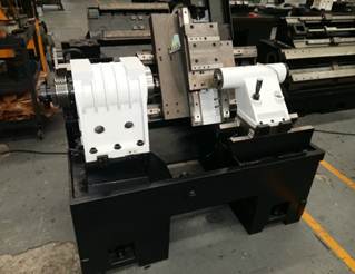 Наклонная станина отлита из чугуна. Угол наклона станины 45° и 60°. Такая конструкция станины обеспечивает лучшую устойчивость, жесткость, гашение вибраций. Так же наклонная станина занимает меньшую площадь, что позволяет легко удалять стружку и очищать станок.