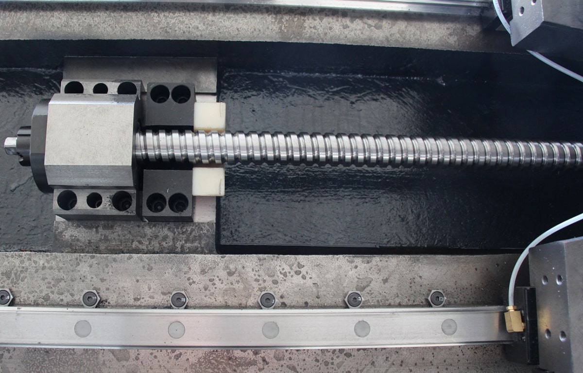 На станке установлены высокоточные ШВП с предварительным натягом, отвечающие классу точности С3. К каждой гайке ШВП подведена трубка импульсной смазки.